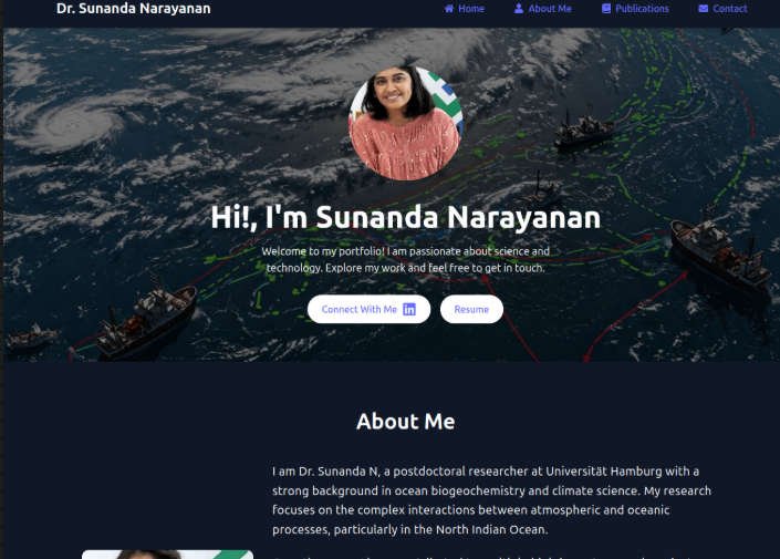 A modern portfolio website for a professional scientist featuring research highlights, publication archive, speaking engagements, and peer testimonials, with an integrated contact and collaboration request system.